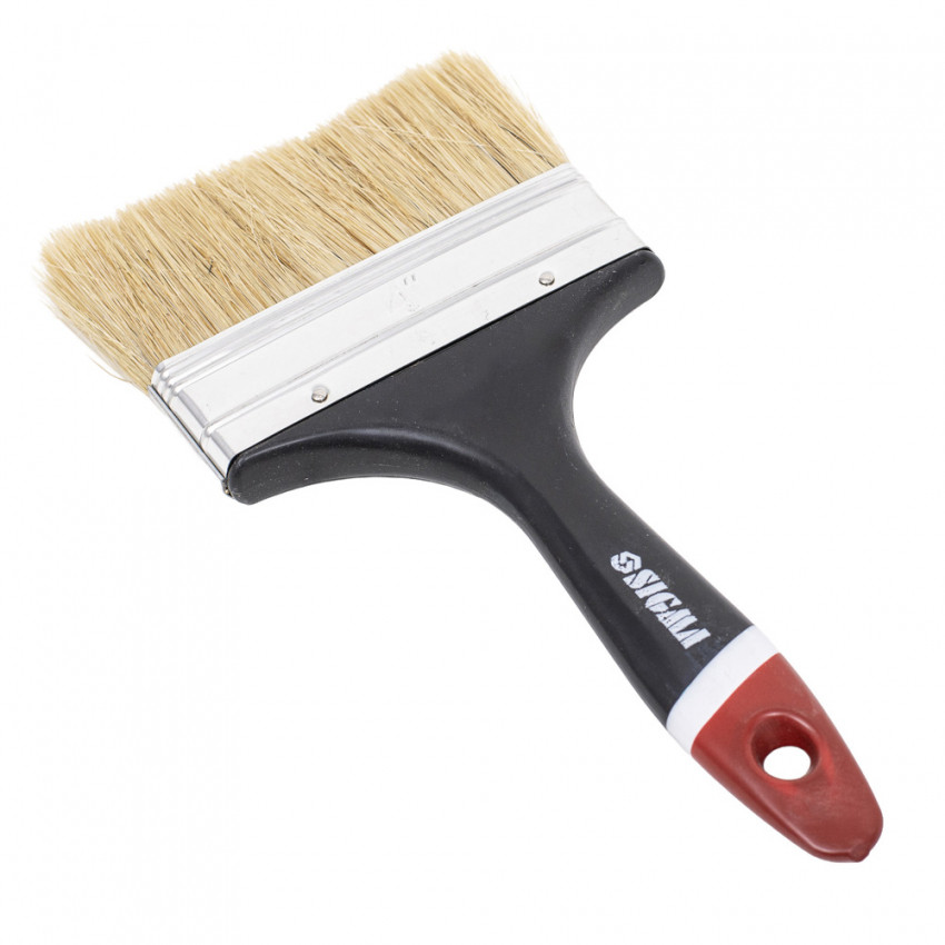 Пензель флейцевий англійський 4' SIGMA (8302561) виготовлений з натуральної щетини для роботи з усіма видами лакофарбової продукції, в тому числі з агресивними. Призначена для внутрішніх та зовнішніх робіт. Перевагами даного пензля є: універсальність у роботі з будь-якими ЛКМ, ергономічна ручка з отвором для зберігання, рівномірне нанесення матеріалу на поверхню, стійкість до розчинників.