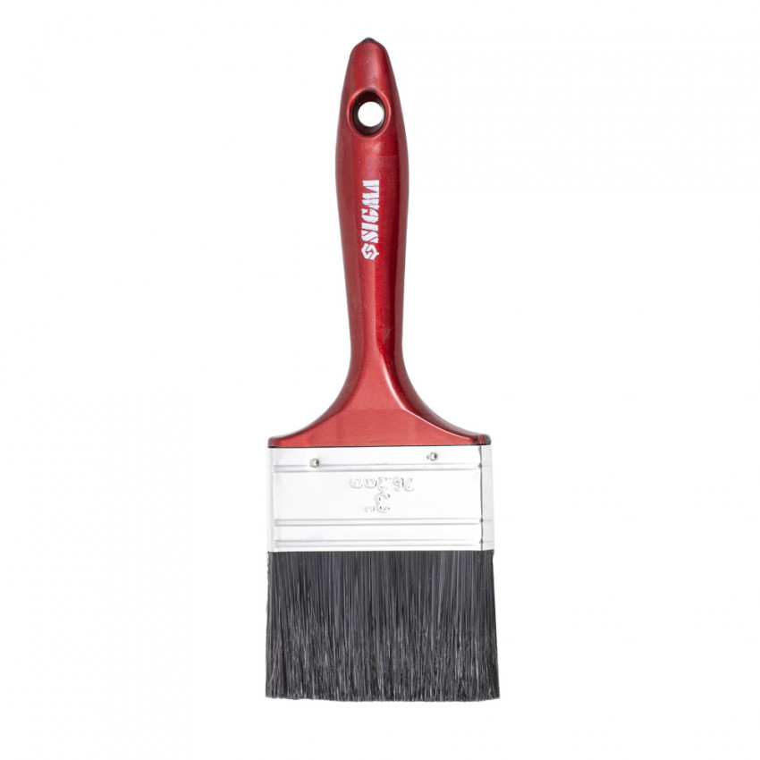 <b>Пензель флейцевий "Лакра" 3" SIGMA (8302361)</b> виготовлен зі штучної щетини чорного кольору для роботи з усіма видами лакофарбової продукції, найбільш ефективний для лаків. Призначений для внутрішніх і зовнішніх робіт. Перевагами даного пензля є: тривалий термін служби, ергономічна ручка з отвором для зберігання, рівне та гладке нанесення матеріалу на поверхню, висока швидкість фарбування, вона забезпечується будовою волокон щетини, які вбирають ЛФМ не тільки в зовнішній шар, а і у внутрішній.