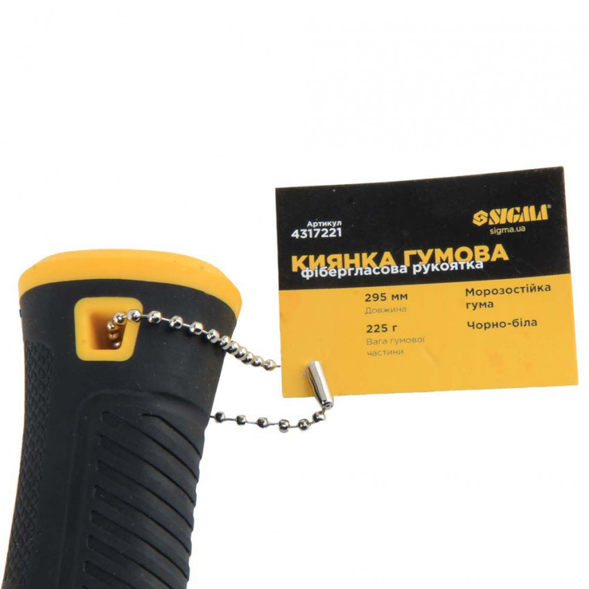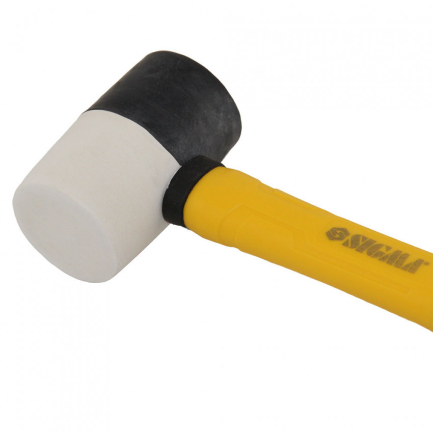 Киянка гумова чорно-біла 225г фібергласова рукоятка SIGMA (4317221) – це спеціальний молоток для роботи з м'яким або крихким матеріалом: деревом, каменем, тонколистовим металом, шкірою та іншими матеріалами, які легко пошкодити. Складається з ручки і ударної гумової головки – бойка.