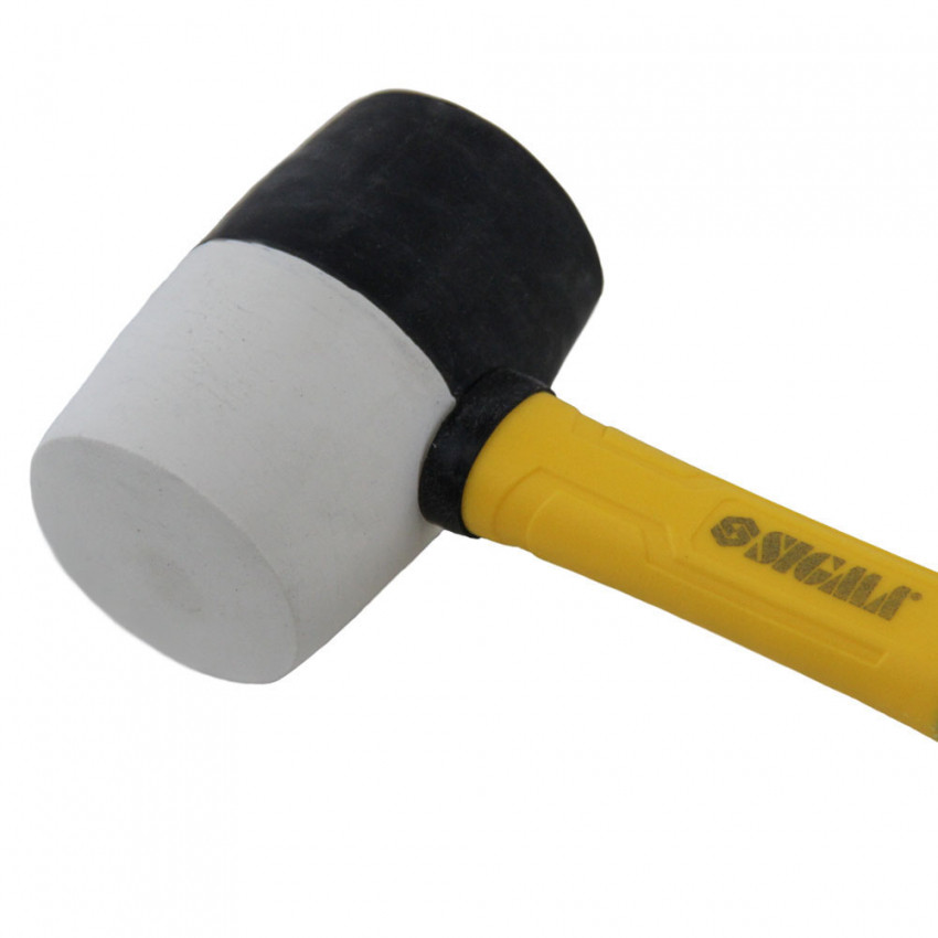 Киянка гумова чорно-біла 450г фібергласова рукоятка SIGMA (4317241) – це спеціальний молоток для роботи з м'яким або крихким матеріалом: деревом, каменем, тонколистовим металом, шкірою та іншими матеріалами, які легко пошкодити. Складається з ручки і ударної гумової головки – бойка.