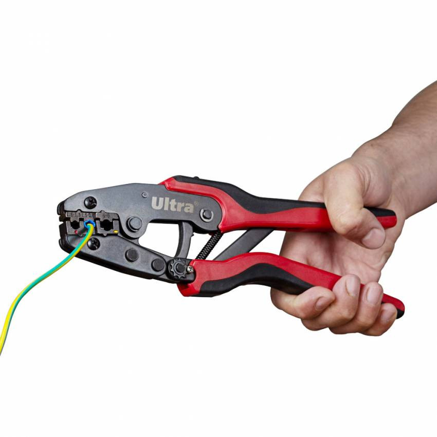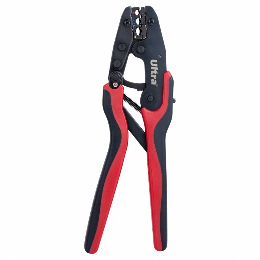 Кліщі для опресування ізольованих клем 0,5-6мм² ULTRA (4372032) професійні кліщі призначені для обтиску ізольованих наконечників та роз'ємів багатожильних проводів електричних кабелів під час виконання електромонтажних робіт. Особливості: механізм регулювання зусилля обтиску; Храповий механізм, що гарантує високу якість обтиску; Поворотна пружина; Ергономічні ручки для зручності роботи. Купити кліщі для опресовування ULTRA Ви можете, оформивши замовлення у нашому інтернет-магазині за допомогою простої форми, доставка здійснюється по всій Україні. Якщо у Вас виникли запитання, Ви можете зателефонувати за вказаними номерами або замовити зворотній дзвінок. Спеціалісти нашого інтернет-магазину нададуть Вам детальні консультації та допоможуть зробити правильний вибір.