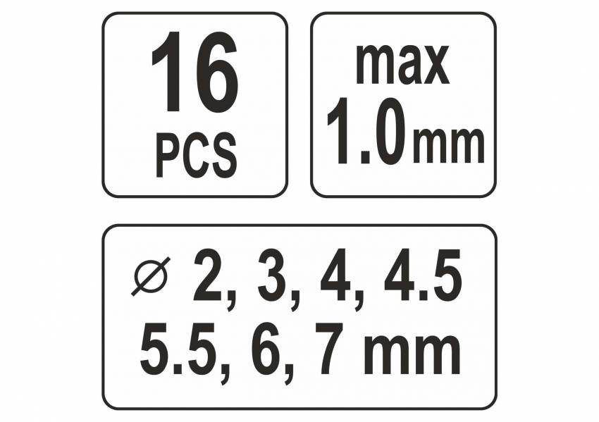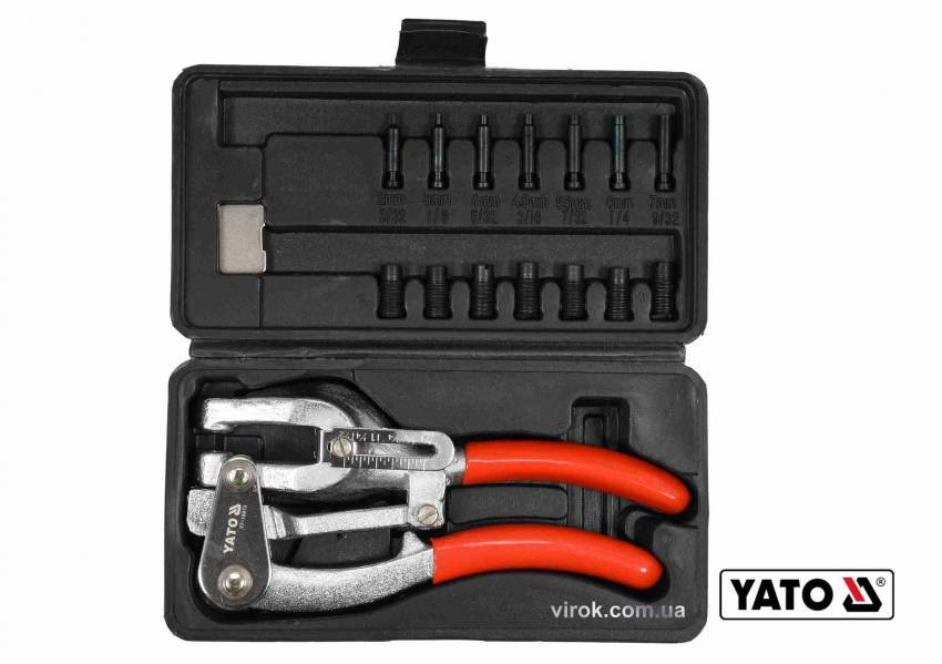 Кліщі для проколювання отворів YATO в листов. металі ≤ 1 мм, 14 насадок Ø= 2-7 мм, 16 шт кейс