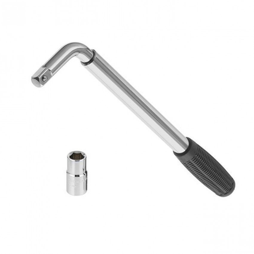 Ключ балонний телескопічний INTERTOOL HT-1598 має L-подібнуну форму з посадковим квадратом під головки 1/2". Застосовується для монтажу та демонтажу гайок і болтів на колесах автомобілів. Це корисний помічник у гаражі для власників транспортних засобів, а також незамінний інструмент на СТО та в шиномонтажі.
