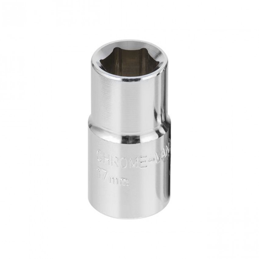 В комплекті шестигранна подвійна головка 17х19 мм, вона надійно кріпляться до посадкового квадрата ключа завдяки фіксатору.