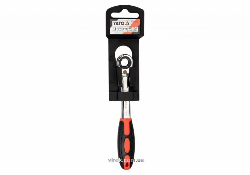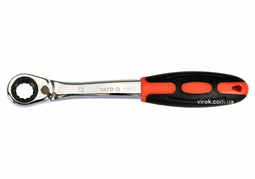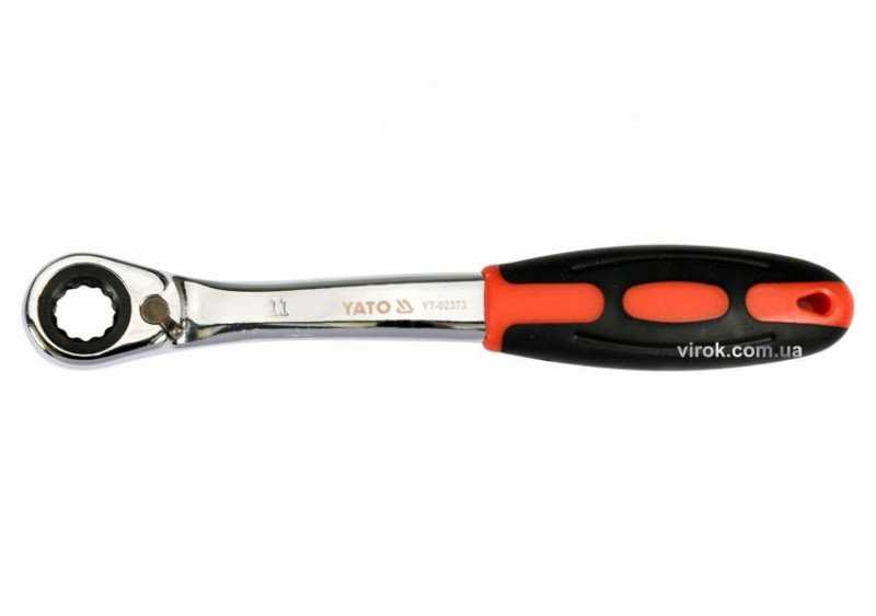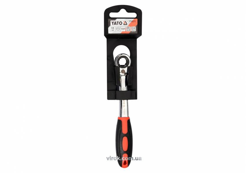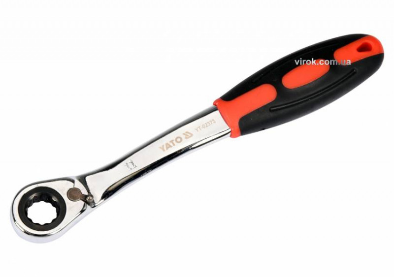 Ключ накидний, вигнутий з тріщаткою YATO: М11, HRC 42-48, Cr-V, з гумовою ергономічною ручкою