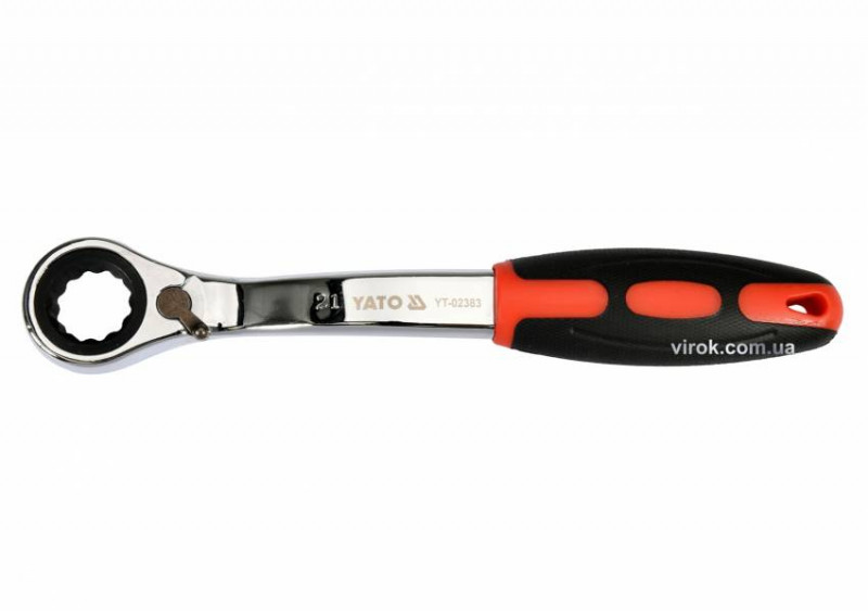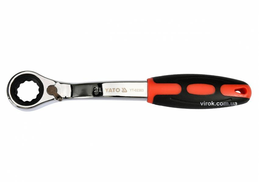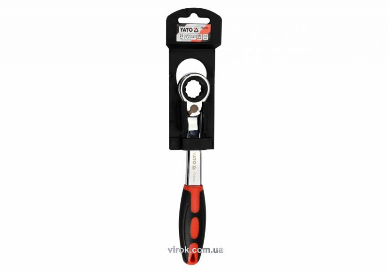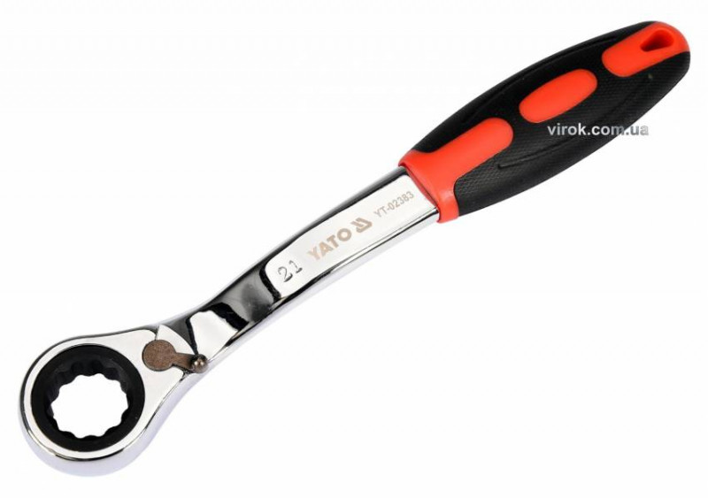 Ключ накидний, вигнутий з тріщаткою YATO: М21, HRC 42-48, Cr-V, з гумовою ергономічною ручкою