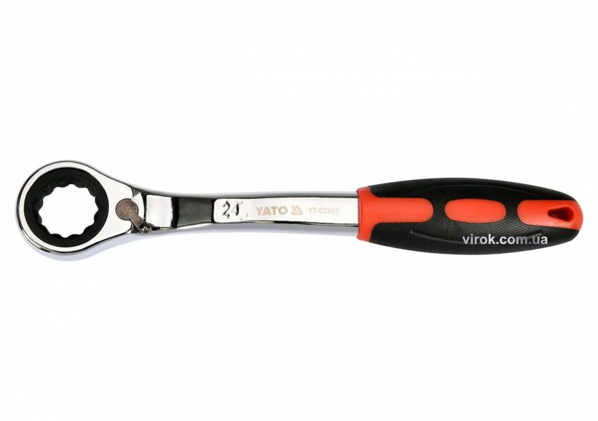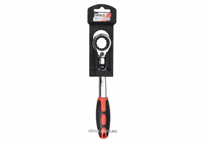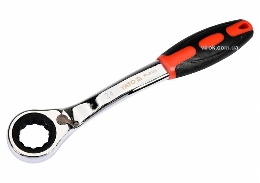 Ключ накидний, вигнутий з тріщаткою YATO: М24, HRC 42-48, Cr-V, з прогумованою ергономічною ручкою