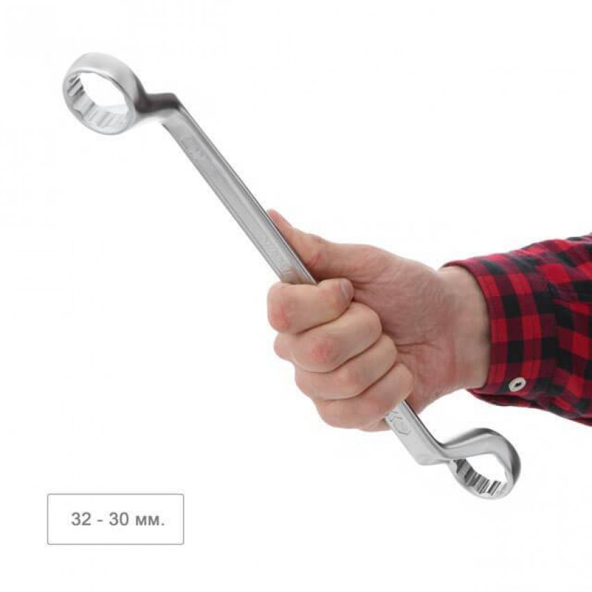 Ключ накидного типу з робочими дванадцятигранними отворами, розміром 30 - 32 мм призначений для монтажу та демонтажу різьбових з'єднань гайок та болтів.