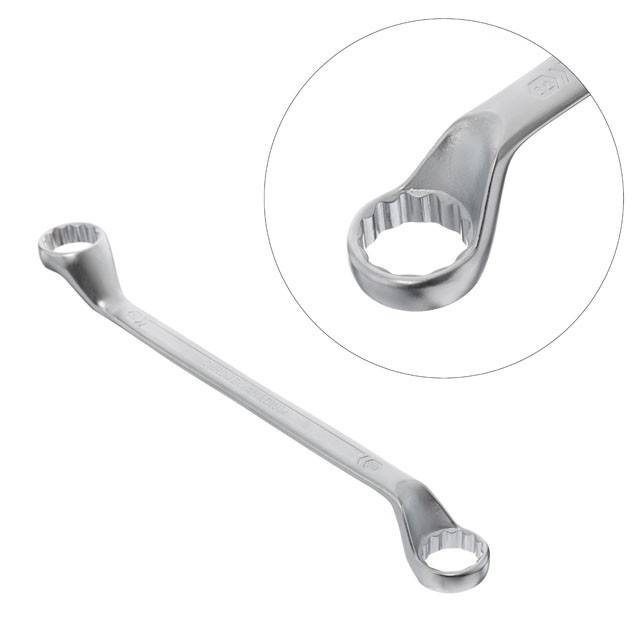 Дві накидні частини з дванадцятьма гранями збільшують площу прилягання поверхонь і знижують ризик зриву граней гайок та болтів. Робочі отвори розміщені під кутом до поверхонь, завдяки чому рука не зачіпляється та вільно обертає ключ.
