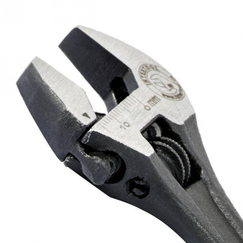 Вирізняється своєю простотою і надійністю, а його міць відчуваєш з першого дотику! Ключ важкий і надійно фіксує з'єднання. Губки розводяться від 0 до 15 мм. Завдяки нанесеній шкалі можна точно відкалібрувати зазор (розмір), необхідний для захоплення кріплення.