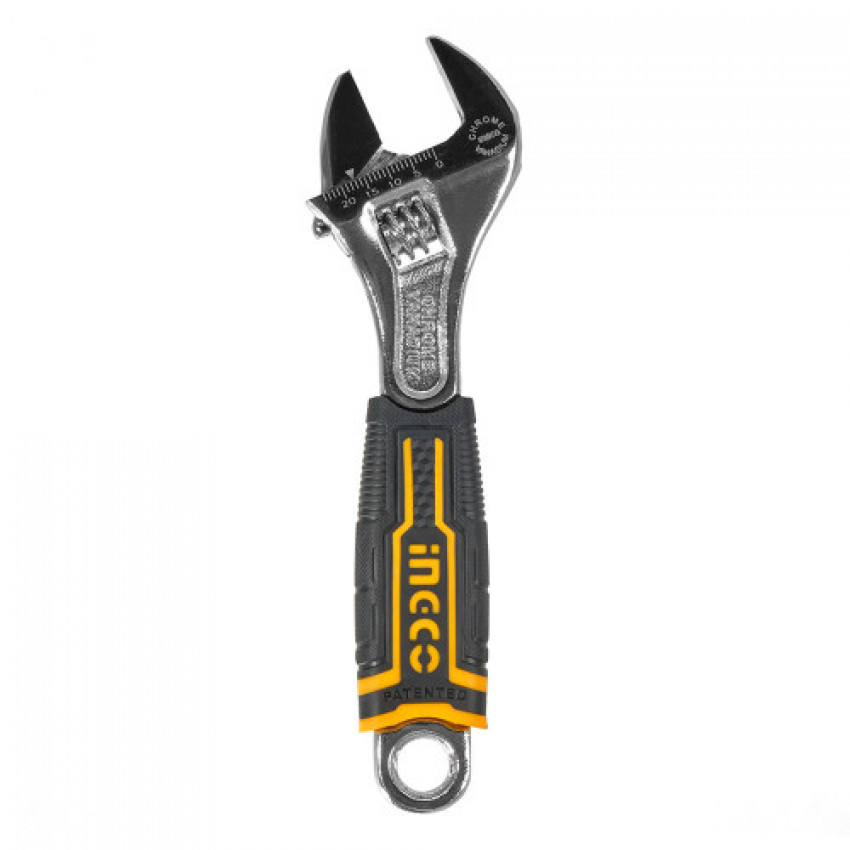 Ключ розвідний 150 мм (0-24 мм) CrV INGCO INDUSTRIAL має міцну конструкцію, широку ручку та зручну шестигранну форму зіва.Регульований розмір зіва до 24,0 мм дозволяє застосовувати один інструмент для роботи з різними типорозмірами кріплення. ергономічна ручка зручно лягає в руку, запобігаючи ковзанню. Довжина інструменту – 150 мм.