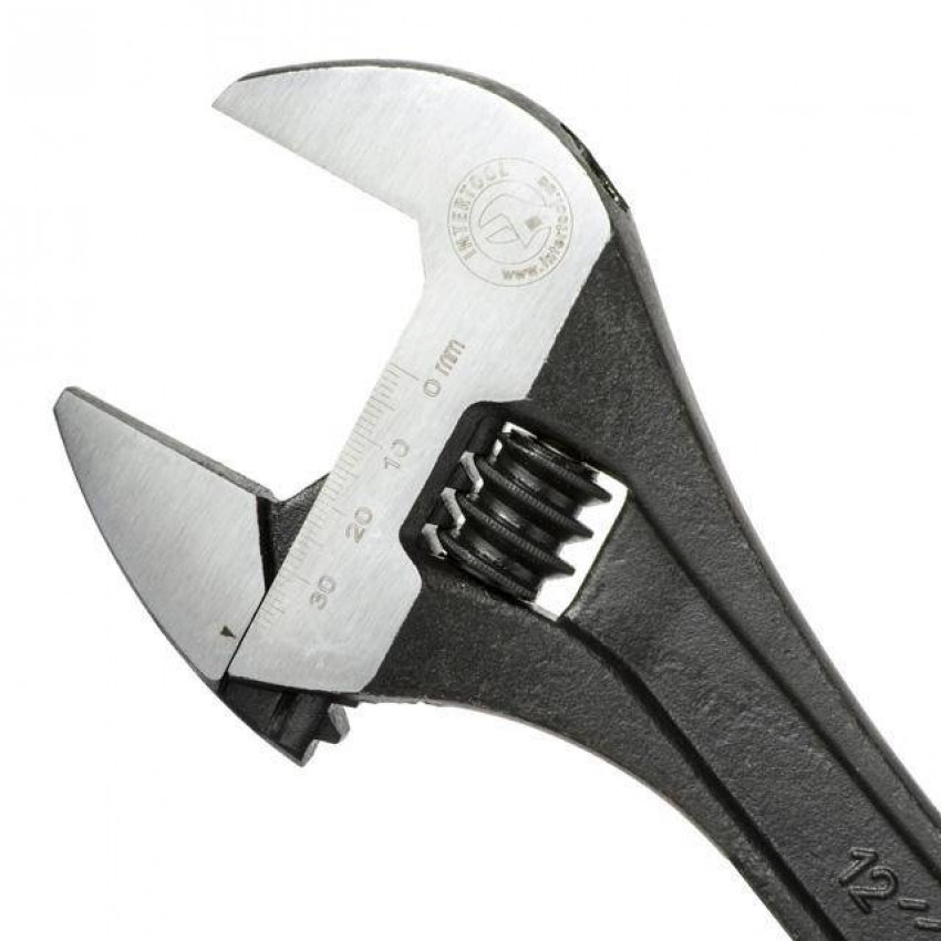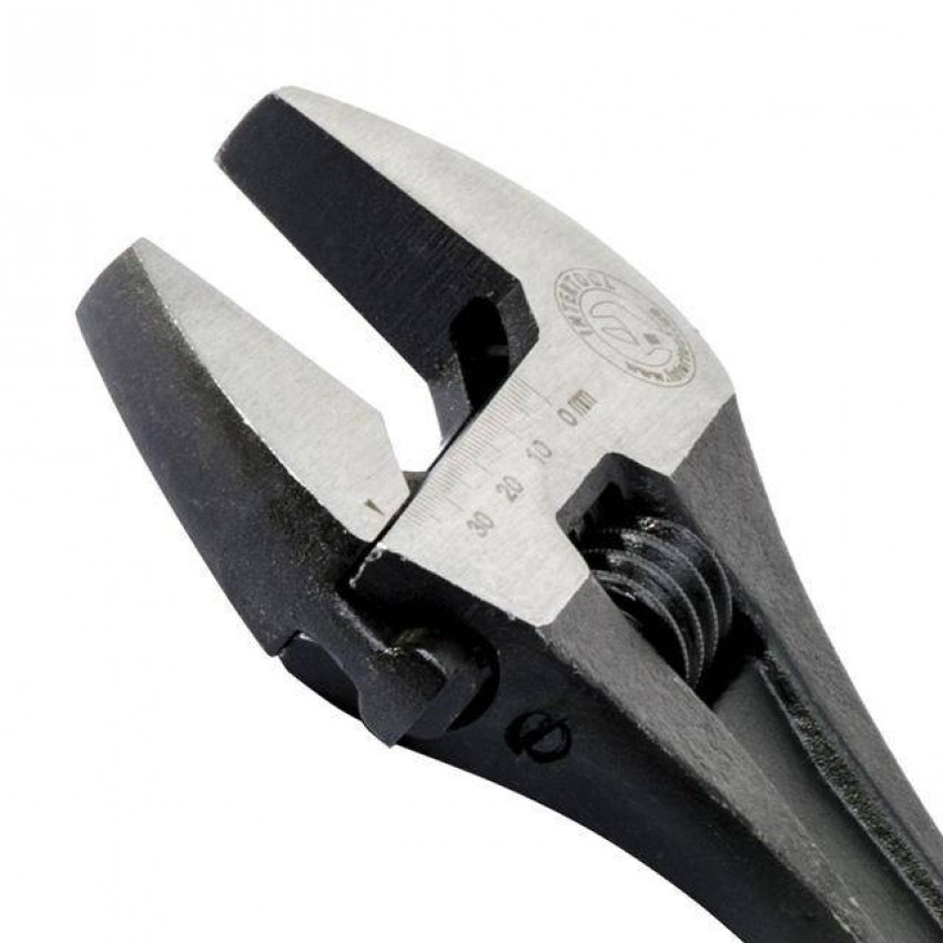Розвідний механізм міцний та не дає люфт у роботі завдяки конструкційним особливостям ключа. Точно відкалібрувати необхідний розмір для захоплення кріплення дозволяє нанесена міліметрова шкала, що не стирається з часом. Довга ручка дозволить зручно маневрувати розвідним ключем та застосовувати ще більше зусиль.