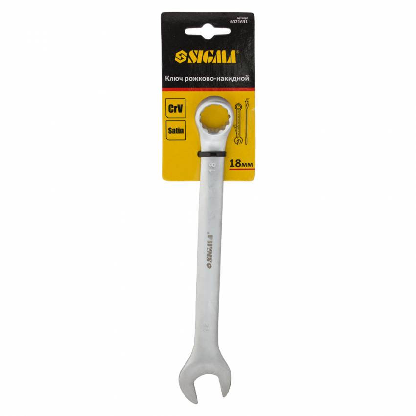 Про товар Ключ ріжково-накидний 18мм CrV satine з підвісом Sigma (6021631)