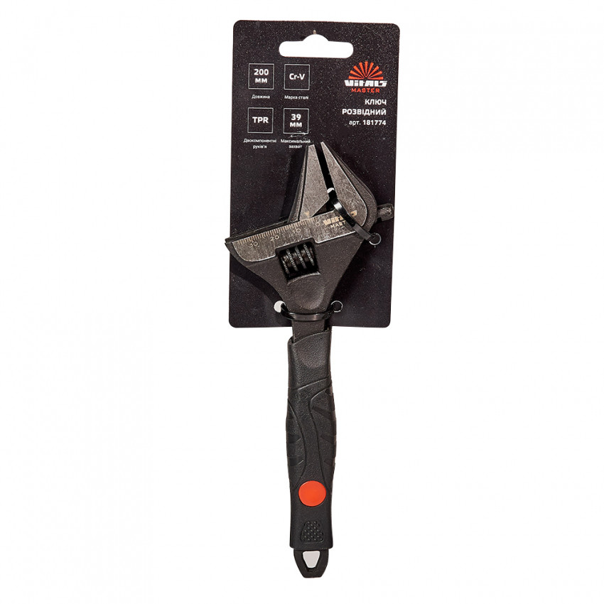 Ключ розвідний тонкі губки 200 мм Vitals Master застосовується для монтажу та демонтажу різьбових з'єднань.