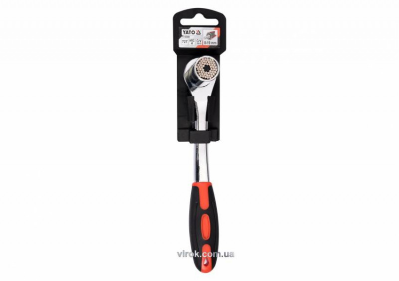 Ключ торцевий з універсальною головкою YATO: М8-19, HRC40, 72T, Cr-V, з прогумованим ергоном. ручкою