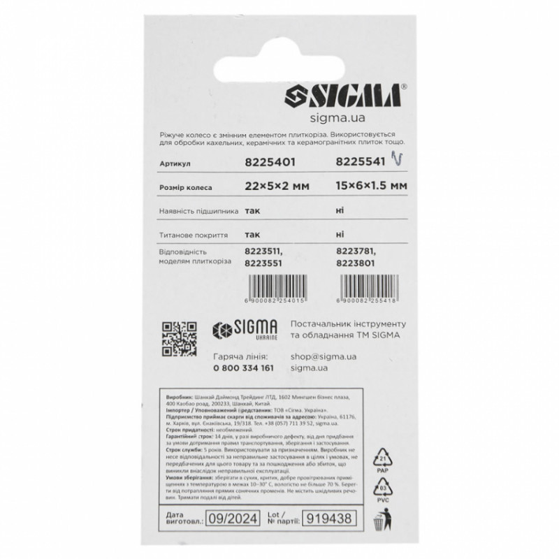 Колесо різальне для плиткорізу 15×6×1.5мм SIGMA (8225541)