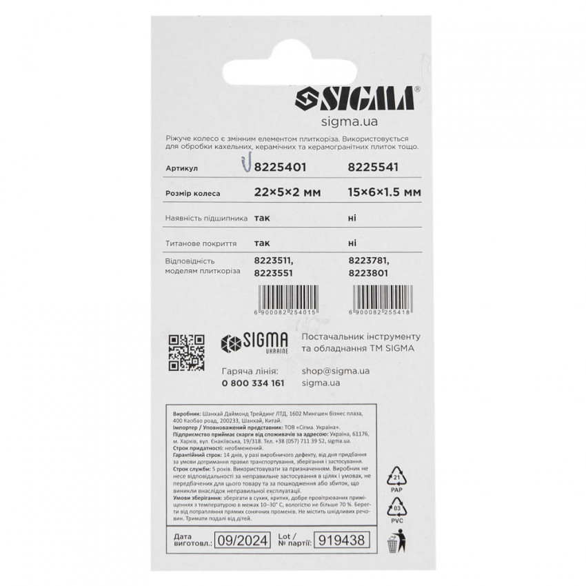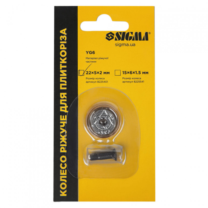 Колесо ріжуче для плиткоріза 22×5×2мм з підшипником титанове покриття SIGMA (8225401)