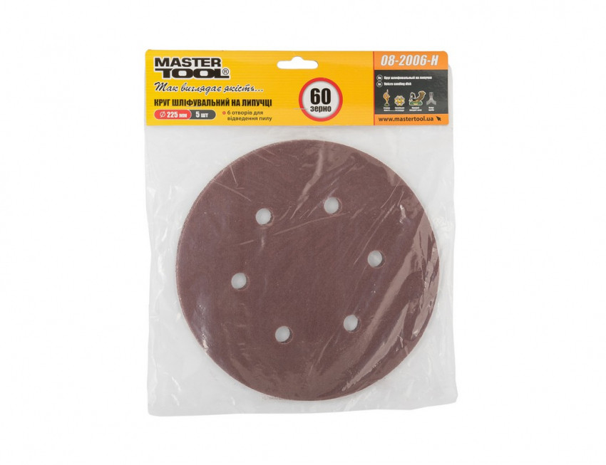 Відгуки Коло шліфувальне на липучці MASTERTOOL з 6 отворами 225 мм зерно 60 5 шт 08-2006-H