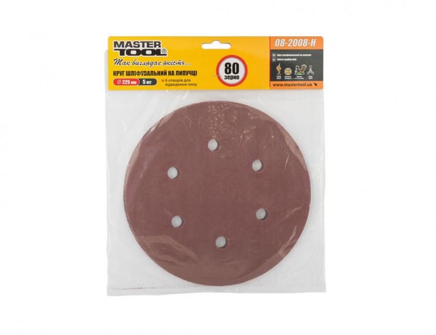 Відгуки Коло шліфувальне на липучці MASTERTOOL з 6 отворами 225 мм зерно 80 5 шт 08-2008-H
