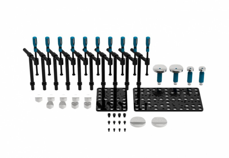 Набір COMPACT — це практичне рішення для невеликих виробництв і майстерень, яким потрібен міцний, але компактний набір інструментів для зварювання труб. Він пропонує базовий, але функціональний комплект кріплень і призм, що забезпечує ефективне позиціювання компонентів на столі.