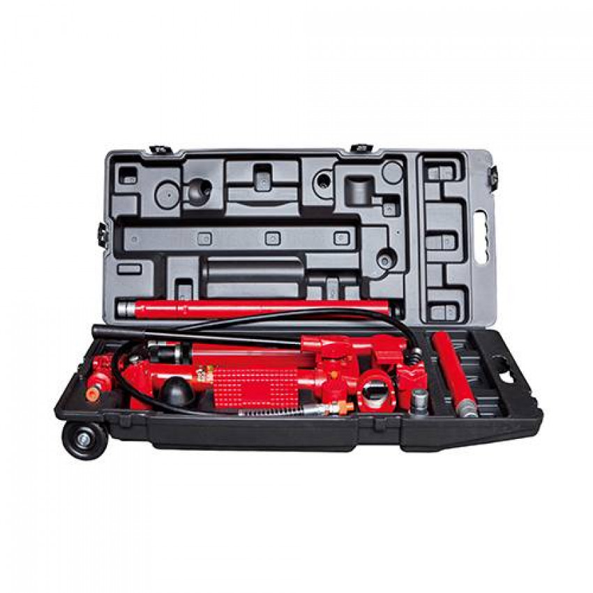Набор гидравлического инструмента представляет собой компактный и удобный в эксплуатации комплект из гидравлического насоса и гидравлического цилиндра, с помощью которых создается рабочее усилие; удлинителей для упрощения работы; специальных фигурных соединяющих насадок, для надежного упора в детали кузова. Умело комбинируя насадки и удлинители, можно добиться высокой эффективности в проведении кузовных работ.
