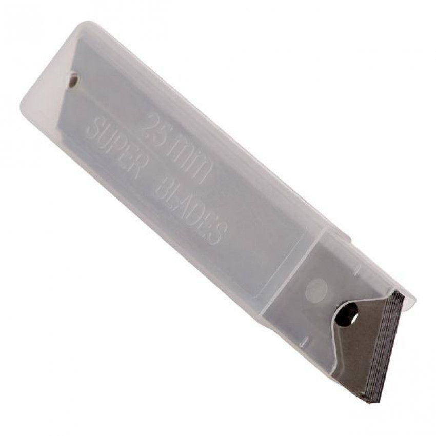 Великий запас лез: в одній упаковці 10 лез по 7 сегментів, шириною 25 мм. Використовуються як витратний матеріал для будівельних, канцелярських та малярних ножів. Виготовлені з інструментальної сталі, мають високу міцність навіть на тонкому вістрі.