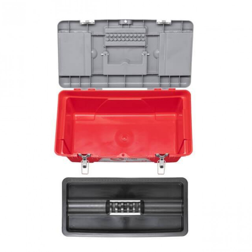 Виготовлені ящики з якісного пластику, стійкого до механічних пошкоджень. Конструкція добре справляється з навантаженнями, тримає форму та не деформується при транспортуванні важких інструментів.