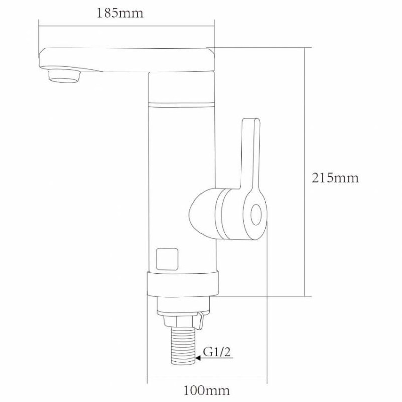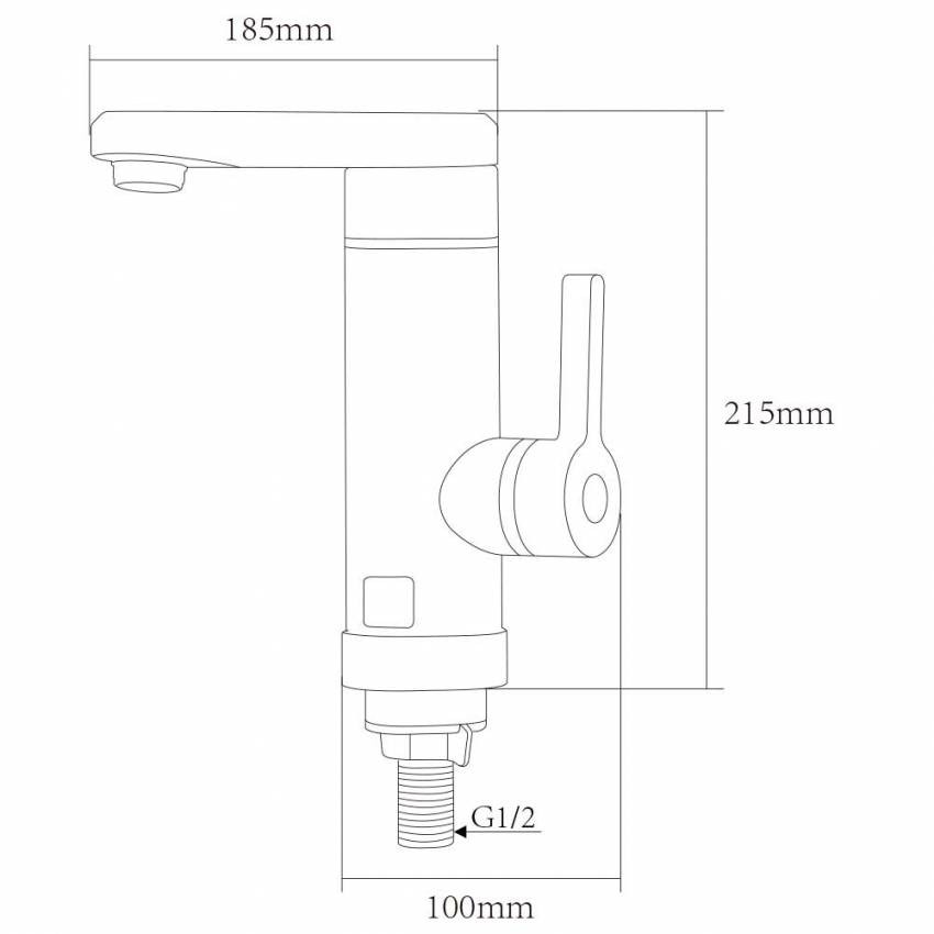 Цей проточник характеризує термостійкий корпус з цифровим дисплеєм для демонстрації температури, всередині знаходяться нагрівальні елементи. Вилив Г-подібний, короткий, з вбудованим аератором. Повертається на 360 градусів, завдяки чому дозволяє зручно мити посуд і продукти харчування. Ручка важільного типу для регулювання потоку гарячої води розташована збоку.
