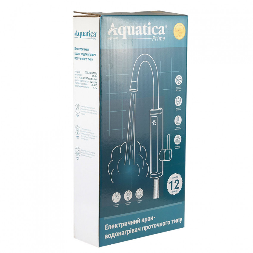 Характеристики Кран-водонагрівач проточний s89 3.3кВт для кухні вилив вухо на гайці з дисплеєм і термостатом (W) AQUATICA (9789113)