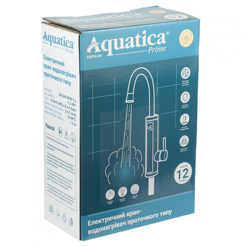 Характеристики Кран-водонагрівач проточний s92 3.3кВт для кухні вилив вухо на гайці з дисплеєм і термостатом AQUATICA (9792103)