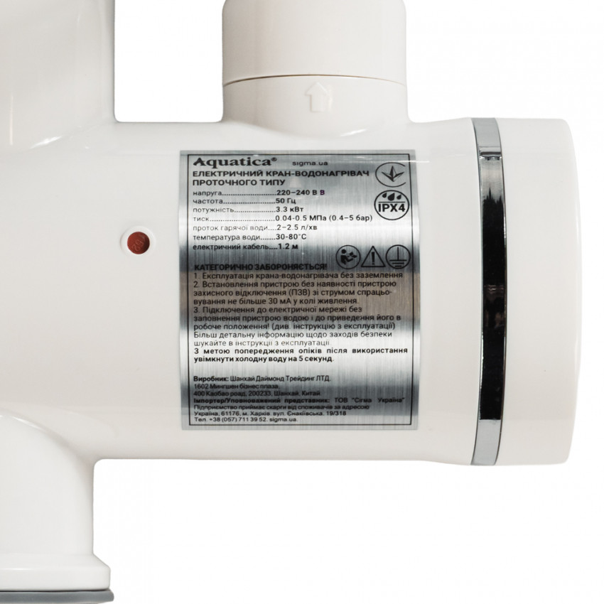 Характеристики Кран-водонагрівач проточний s92 3.3кВт для ванни вилив вухо на гайці з дисплеєм і термостатом AQUATICA (9792203)