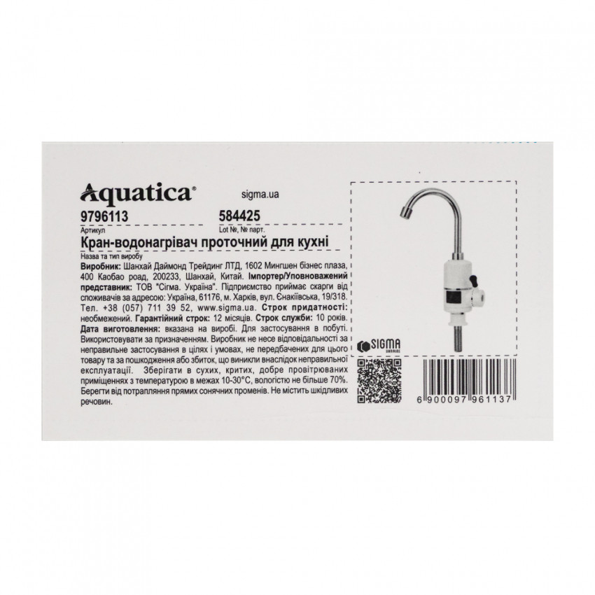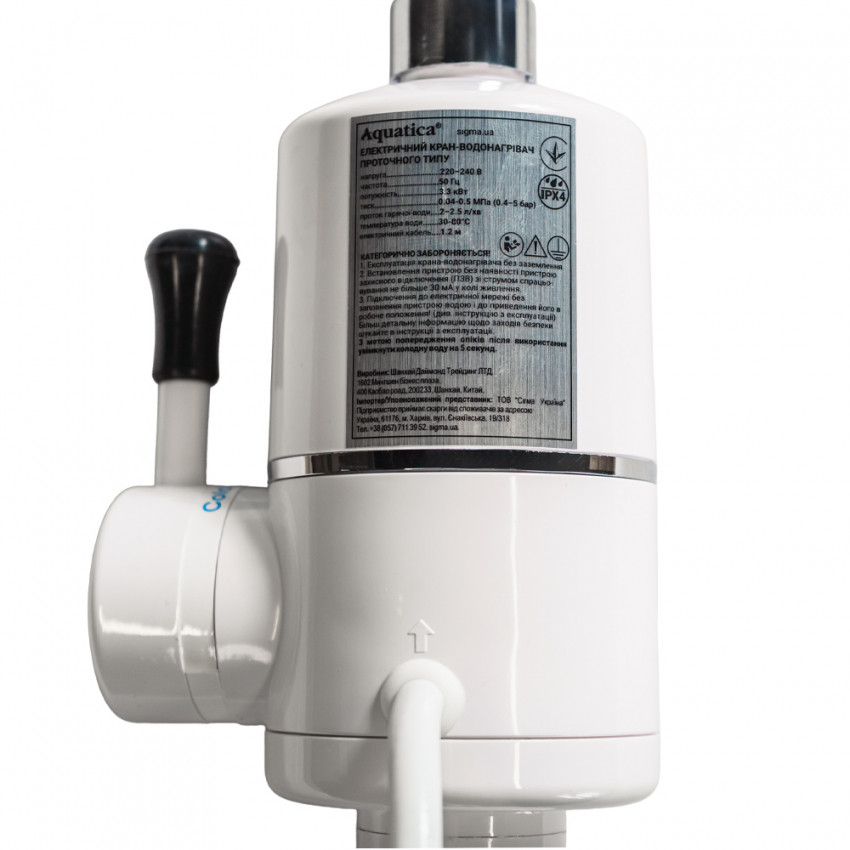 Характеристики Кран-водонагрівач проточний s96 3.3кВт для кухні вилив вухо на гайці з дисплеєм і термостатом AQUATICA (9796113)