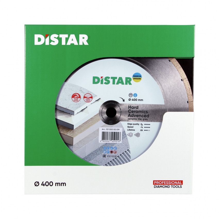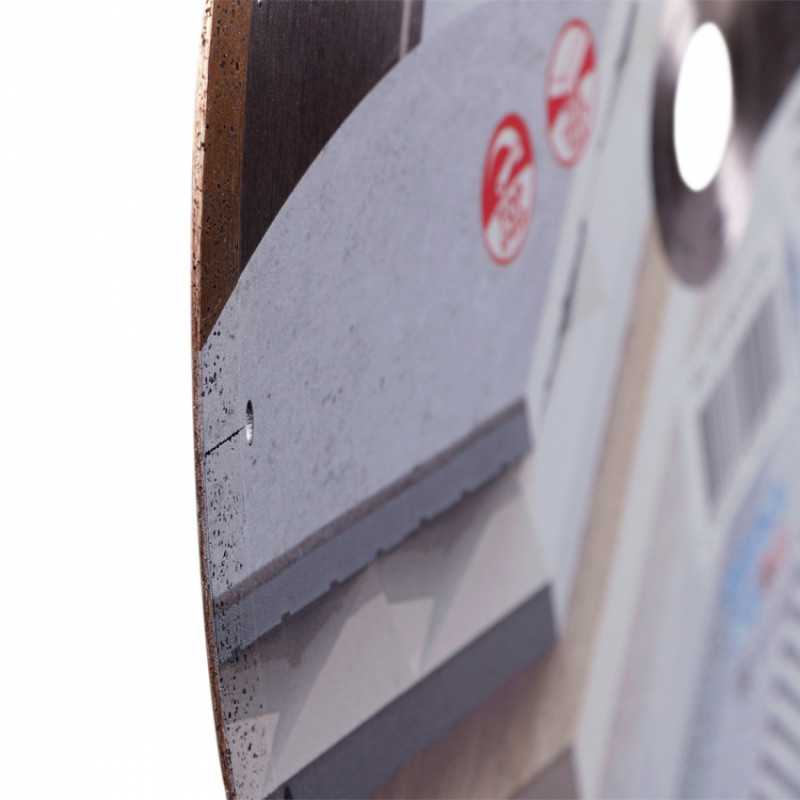 Алмазний диск HARD CERAMICS ADVANCED спеціально створений для різання товстого і міцного керамограніта. До складу алмазоносного шару диска включені графітові чіпси, які створюють мікропористу структуру і виступають в ролі твердого змащення. Алмазоносних шар схильний до лазерної сегментації, що знижує вплив термічних навантажень на диск.
