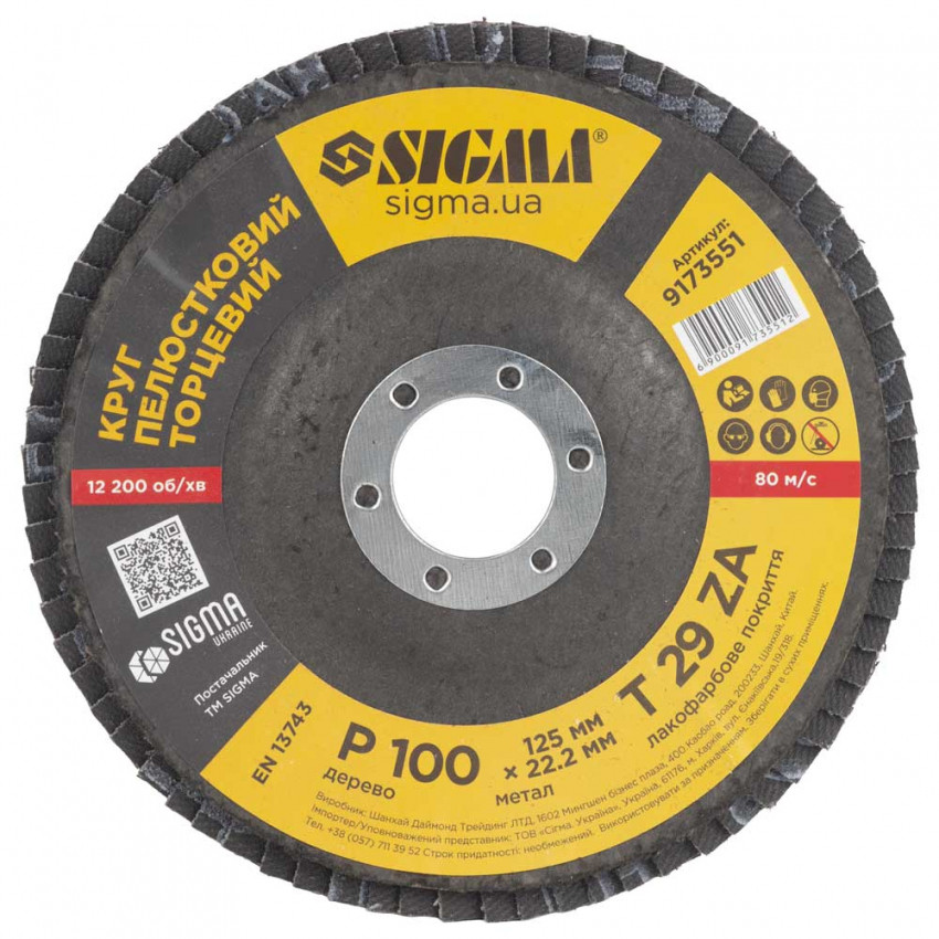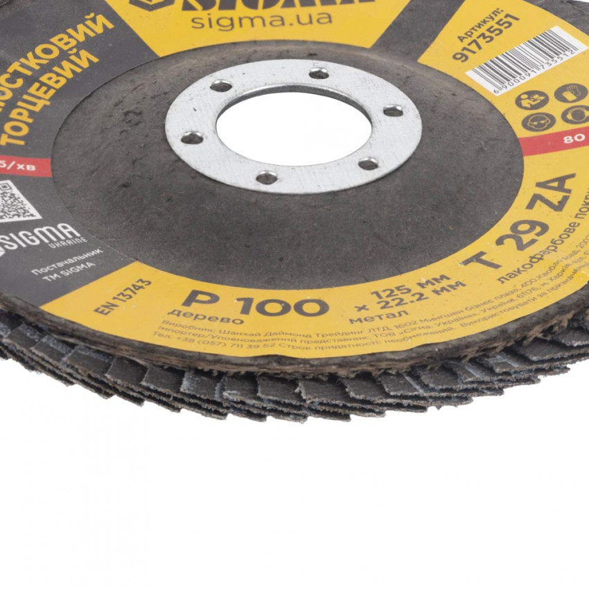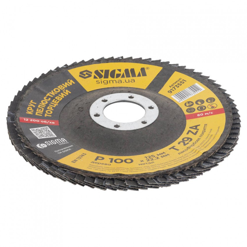 Про товар Коло пелюсткове торцеве Т29 (конічний) ZA Ø125мм P100 Sigma (9173551)