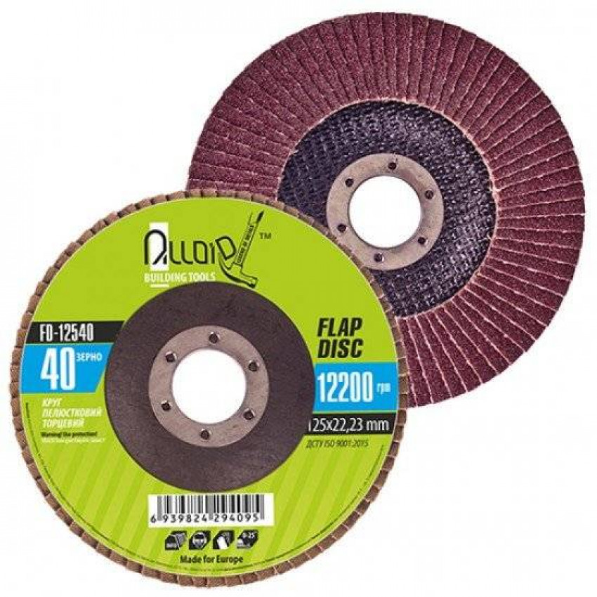 Круг пелюстковий торцевий Alloid FD-12540 діаметром 125 мм має конічну форму і призначений для обробки дерева і металу.