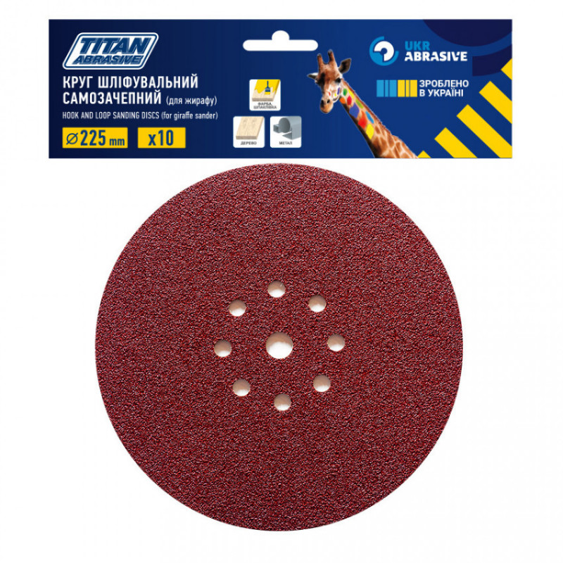 Самозачепні шліфувальні круги з отворами на липучці діаметром 225мм використовуються для шліфувальних машин типу "жираф" для обробки стін і стель.