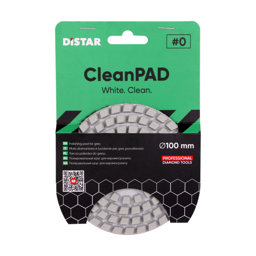 Швидкі гнучкі шліфувальні круги Clean PAD діаметром 100 мм, створені спеціально для роботи з плиткою. Металізовані алмази забезпечують стабільну працездатність і високий ресурс протягом усього процесу роботи. Білий колір Clean PAD гарантує відсутність слідів на оброблюваній поверхні. Завдяки цим кругам ви не тільки швидко виконаєте роботу, але й досягнете бездоганної якості. Як і кожен полірувальний круг, перед початком роботи його необхідно заточити на абразивному бруску. Шліфувальні круги оптимізовані для роботи з плиткою, забезпечуючи швидкість і точність обробки цього матеріалу. Насолоджуйтесь високою якістю шліфування з Clean PAD! Кола мають зернистості #0 (велике алмазне зерно для швидкого шліфування) #50 #100 #200 #400 #800