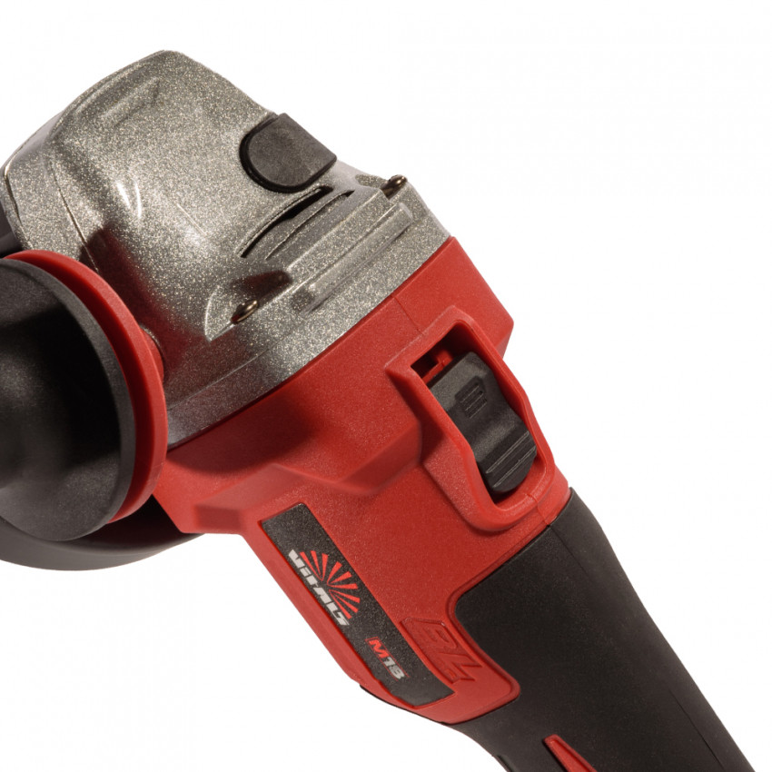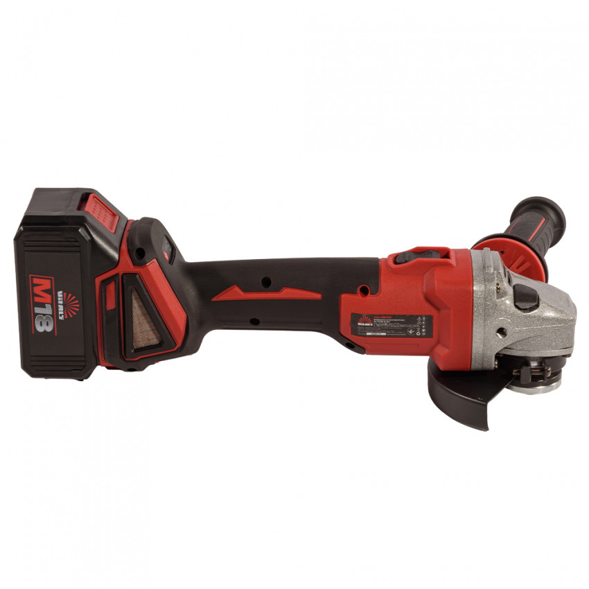 Шліфмашина кутова акумуляторна ТМ «Vitals», серія «Master», модель «ALs 18125c BL» виготовлена із дотриманням усіх вимог безпеки та є надійним інструментом для побутового використання. Вона призначена для шліфування, різання та зачищання металевих виробів за допомогою абразивних дисків. Принцип роботи базується на перетворенні електричної енергії на обертальний рух шпинделя, на який кріпляться змінні насадки. Конструкція включає безколекторний двигун, конічний одноступеневий редуктор у металевому корпусі, а також ергономічне подовжене руків’я з можливістю приєднання акумуляторної батареї.