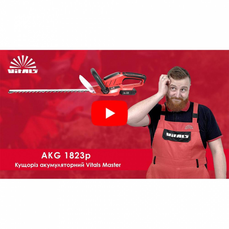 Кущоріз акумуляторний Vitals Master AKG 1823p призначений для облаштування садів та парків, для швидкого та чистого підстригання живоплотів з чагарника. Основною відмінністю моделі Vitals Master AKG 1823p є робота від акумуляторної батареї з напругою 18В. Таким чином, робота не залежить ні від електричних дротів, ні від бензину. Довжина лез кущі становить 520 мм, а максимальна товщина гілок, що перерізаються.
