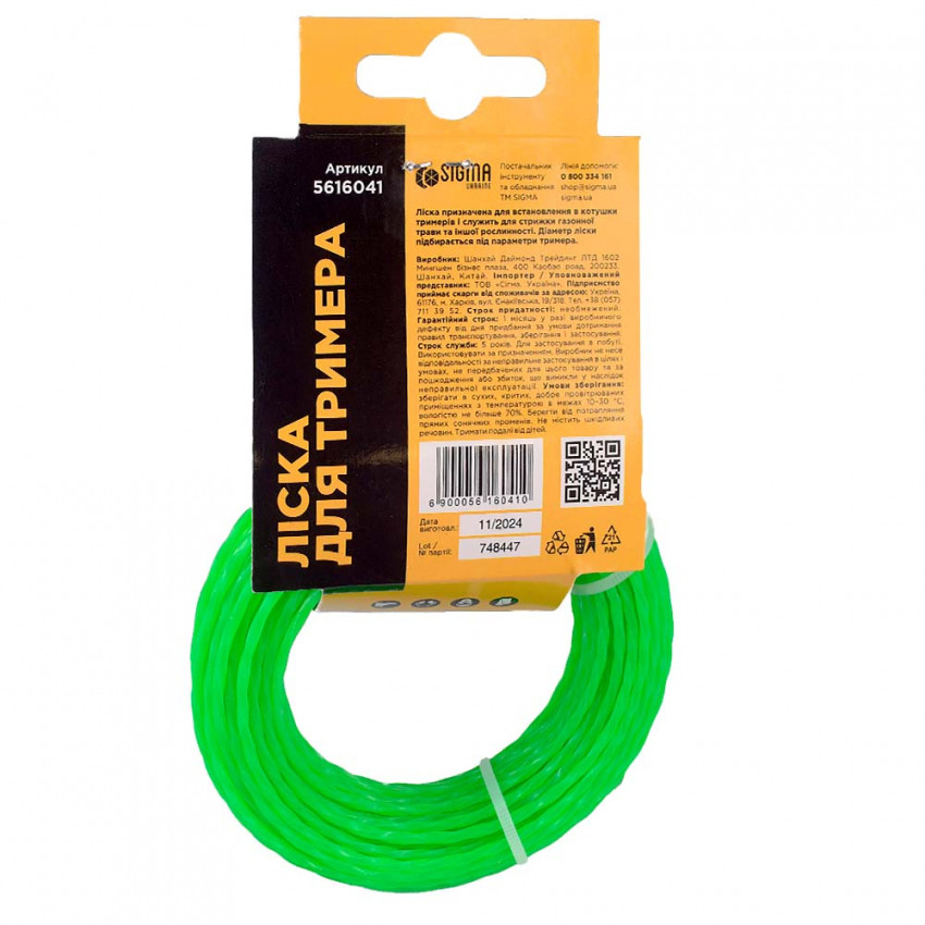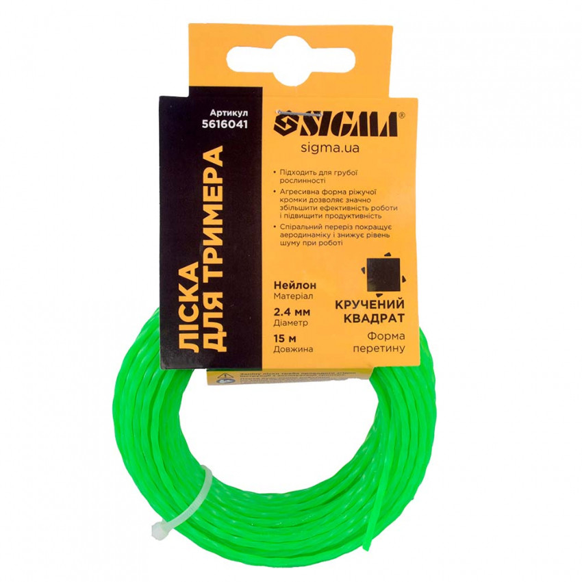 Ліска для тримера кручений квадрат Ø2.4мм 15м Sigma (5616041) призначена для встановлення в котушки триммерів і служить для стрижки газонної трави та іншої рослинності. Виготовлена із високоякісного нейлону. По всій довжині має однакову товщину. Має високу гнучкість, міцність на розрив і зносостійкість. Чи не розшаровується і не втрачає своїх якостей. Товщина волосіні підбирається під параметри тримера.