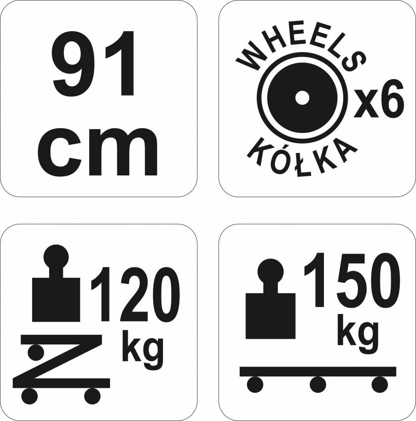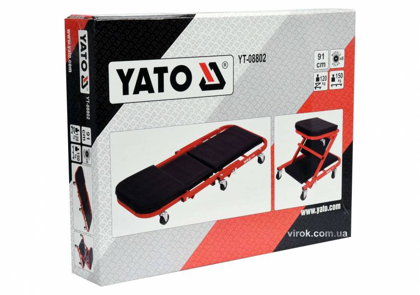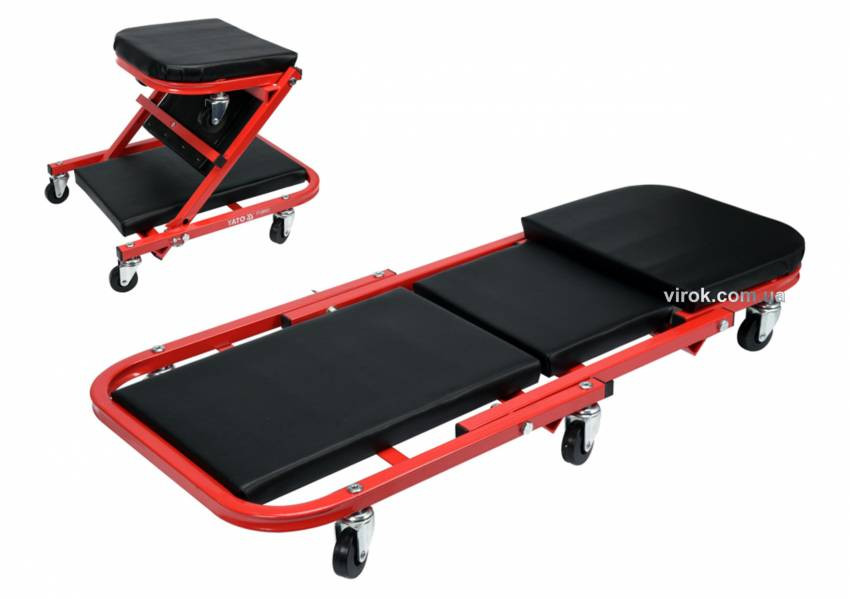Лежак-сиденья для ремонта YATO на 6 колесах; 91х 42х 13 см, для навант. леж./сид. полож- 150/120 кг