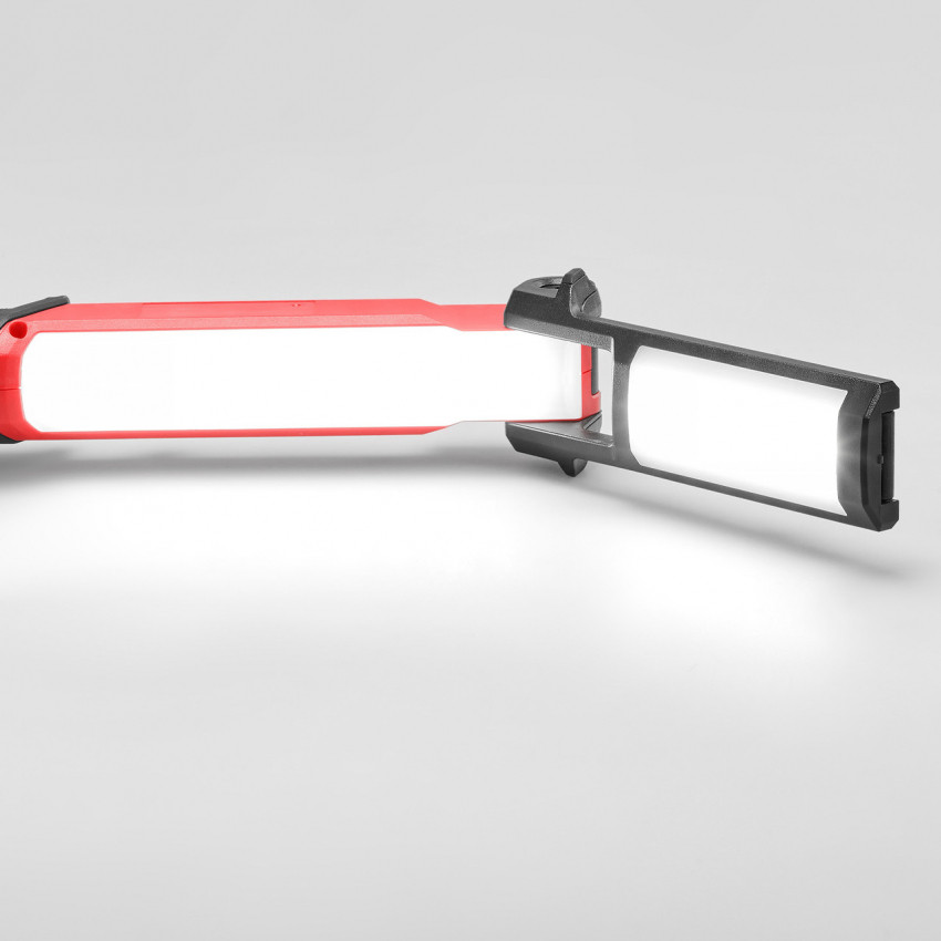 Темні майстерні, гаражі чи будівельні майданчики тепер у минулому: ліхтар Einhell TE-CL 18/1000 S Li-Solo з живленням від акумулятора забезпечує світло в темряві. Потужний літій-іонний акумулятор з інноваційного сімейства Power X-Change забезпечує оптимальний рівень освітлення. Головка ліхтаря складається та дозволяє вибрати три режими освітлення для високої гнучкості використання: дві панелі світяться разом або окремо. Їхній світловий потік 1000 люменів та 15 високоінтенсивних світлодіодів забезпечують освітлення на короткій відстані до 5 метрів. Яскравіші умови освітлення забезпечуються нейтрально-білим кольором світла 5700 K. Тонка та легка конструкція акумуляторного ліхтаря Einhell і ручка з м'якою поверхнею забезпечують гнучке використання та просте й компактне зберігання. Завдяки численним варіантам кріплення, таким як петлі та гачок для кріплення, можливі способи застосування безмежні. Акумуляторний ліхтар TE-CL 18/1000 S Li - Solo постачається без акумулятора та зарядного пристрою.