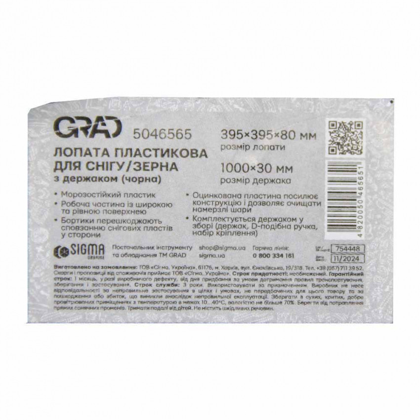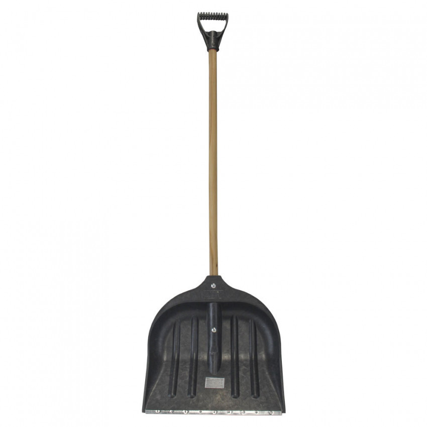 Лопата для снігу/зерна пластикова з оцинкованою планкою Standard 395×395мм з дерев'яним держаком (чорна) GRAD (5046565) застосовується для очищення прибудинкових територій, стежок, тротуарів і плоских дахів від снігу.