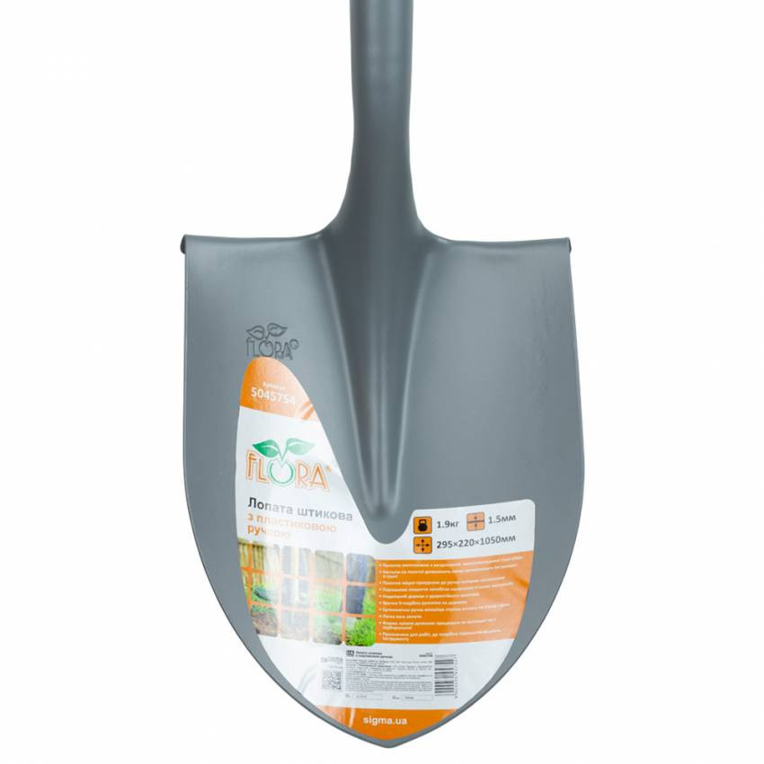 Про товар Лопата штикова із пластиковою ручкою 295×220×1050мм 1.9кг (американка) FLORA (5045754)