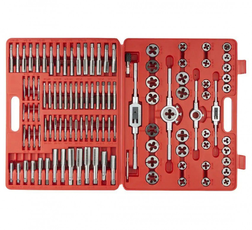 Цей універсальний комплект призначений для нарізання та відновлення різьби різних типів. Підходить для роботи як з метричними, так і з дюймовими різьбами, що робить його незамінним інструментом для автомайстерень, слюсарних робіт і домашнього використання.