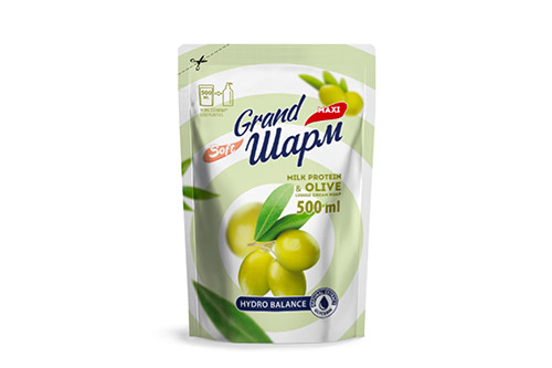 Про товар Мило туалетне рідке Grand Шарм Молочний протеін і Оливка 500мл (дойпак)