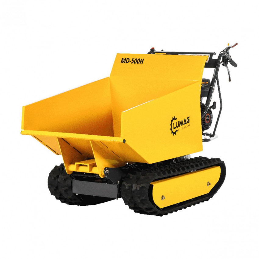 Міні-самоскид Lumag MD500H - є ідеальним помічником для всіх транспортних робіт у різноманітних галузях промисловості. Завдяки вантажопідйомності до 500 кг він може легко перевозити сипучі та генеральні вантажі навіть на складній місцевості. Завдяки своїй тонкій конструкції та компактним розмірам MD-500H може безпечно дістатися до місця навіть через вузькі ворота та стежки. Гідравлічний перекидний жолоб забезпечує легке спорожнення. Міцна сталева конструкція та потужний гідравлічний циліндр у поєднанні з простим, інтуїтивно зрозумілим керуванням.