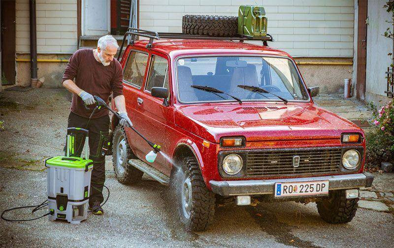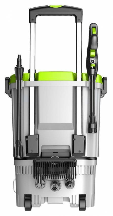 У комплект входить: акумулятор, пляшка миючого засобу, шланг для високого тиску 5 метрів, пістолет.