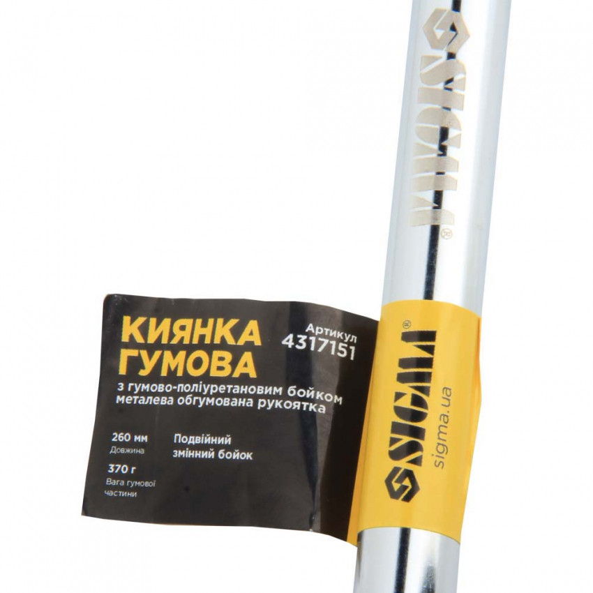 Молоток-киянка з гумово-поліуретановим бойком 370г металева обгумована рукоятка SIGMA (4317151) – це універсальний інструмент, що поєднує властивості звичайного молотка і киянки.