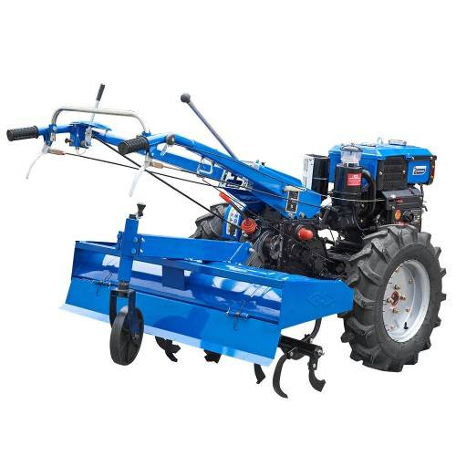 - Довга вісь, розширена регульована колія 845 мм - збільшує стійкість мотоблока при роботі на схилах і при транспортних роботах, дозволяє виставляти колію під різні сільськогосподарські культури.